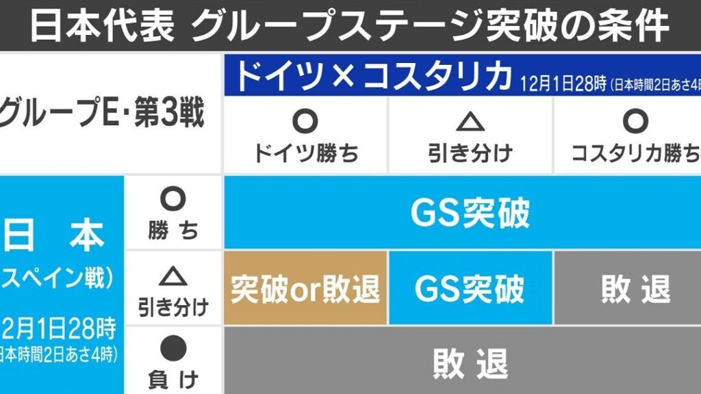 - 相手チームの結果: 同グループ内の他チームの結果も考慮されます。