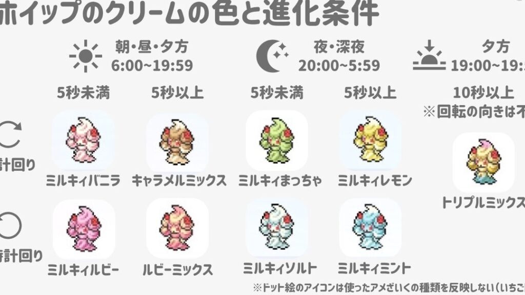 マホイップの多様な種類は私たちに楽しさと戦略を提供してくれます。それぞれの型が持つ特性はバトルや育成において重要な役割を果たし、選ぶ楽しみも増えます。可愛らしい見た目とユニークな風味はファンを惹きつけてやみません。